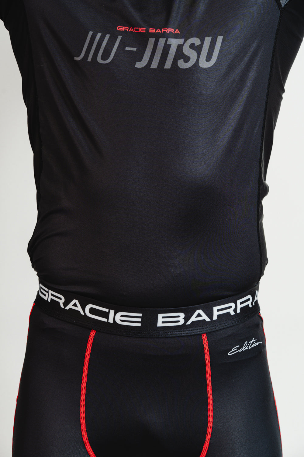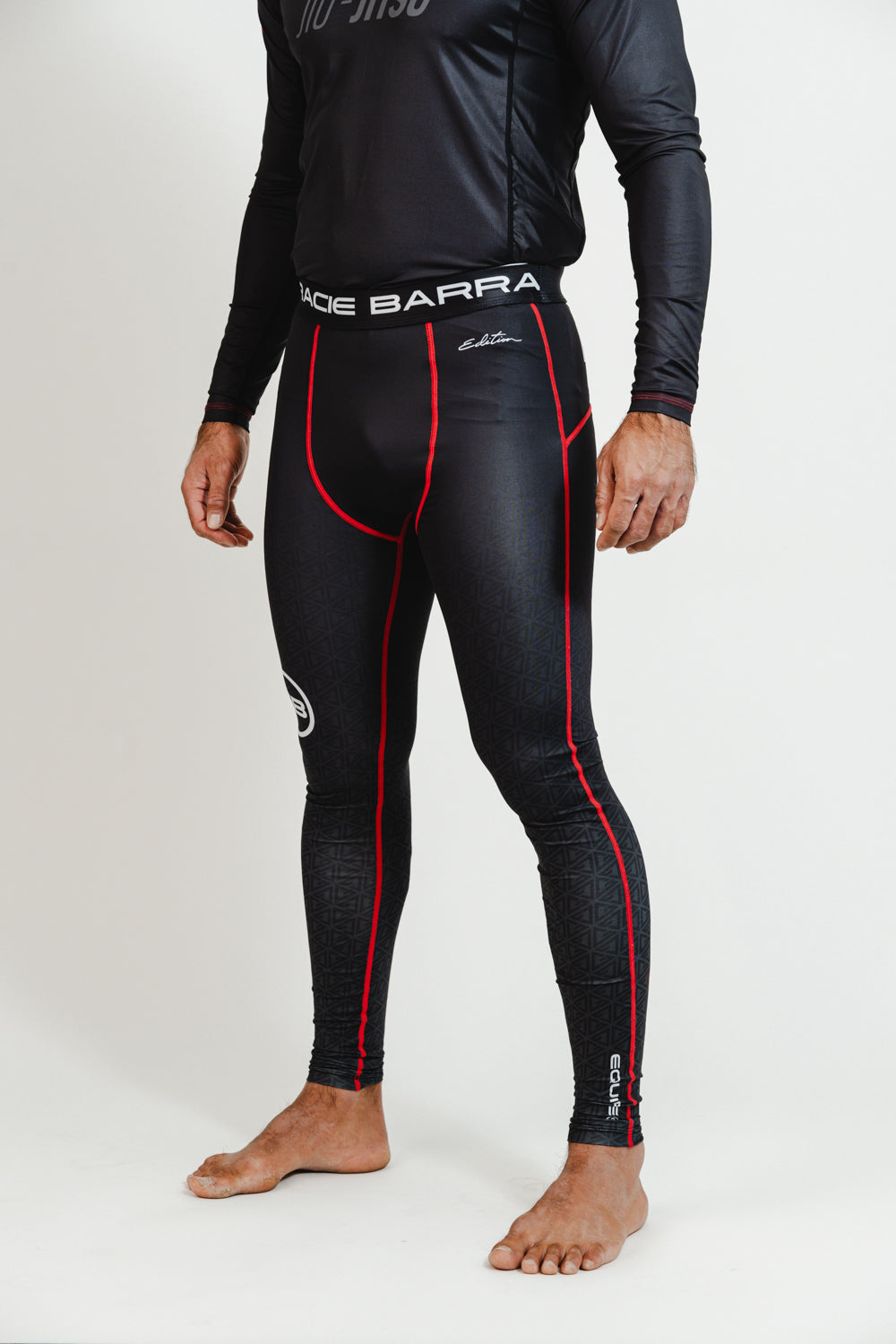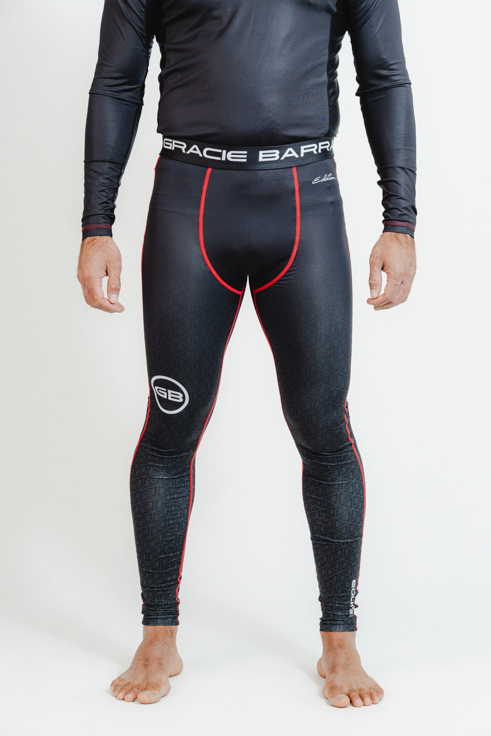 Nossas calças de compressão são mais adequadas para uso por baixo das calças do quimono ou shorts de treino, e não como equipamento de compressão independente, pois podem parecer translúcidas quando esticadas. Este item tem um ajuste fiel ao tamanho. Se preferir um ajuste mais folgado, peça um tamanho maior.