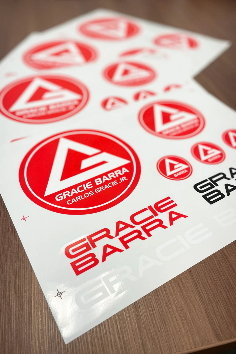 Adesivo em vinil branco, impressão em Silk com meio corte especial.