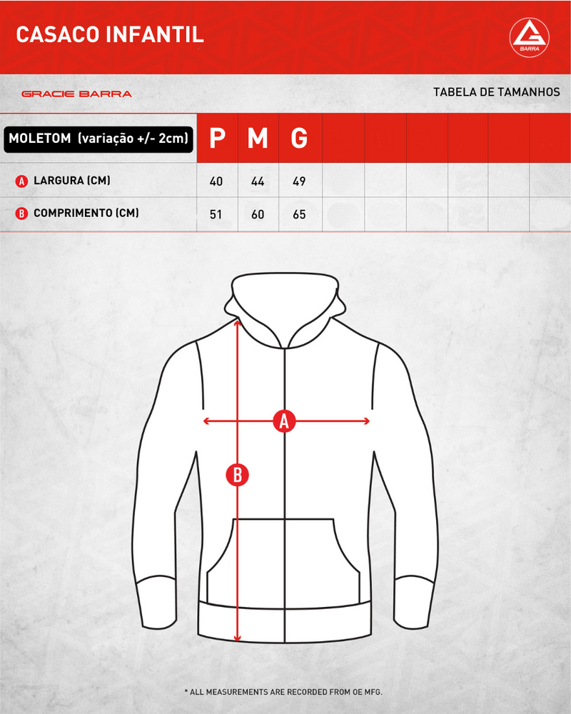 Disponível em tamanhos infantis de P(4/6 anos) M(8/10 anos) G(12/14 anos).