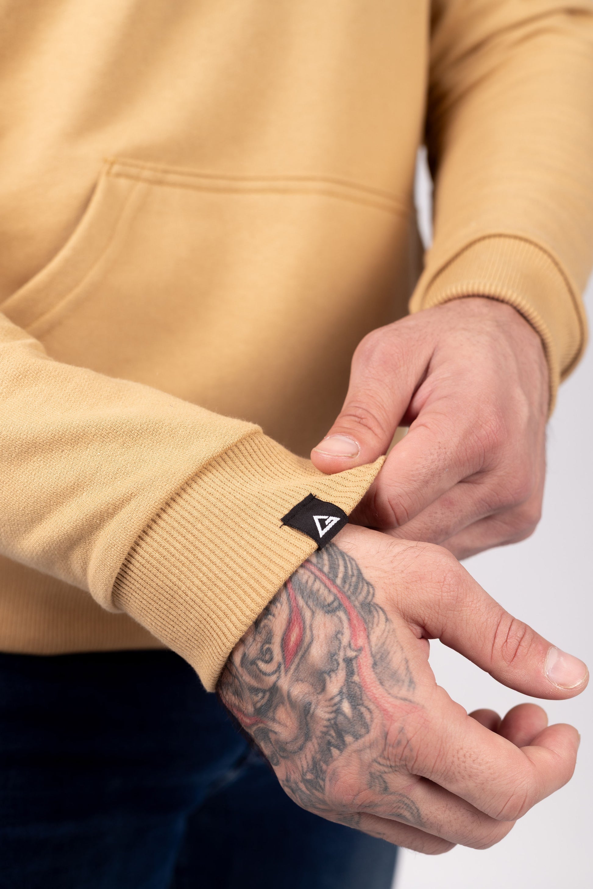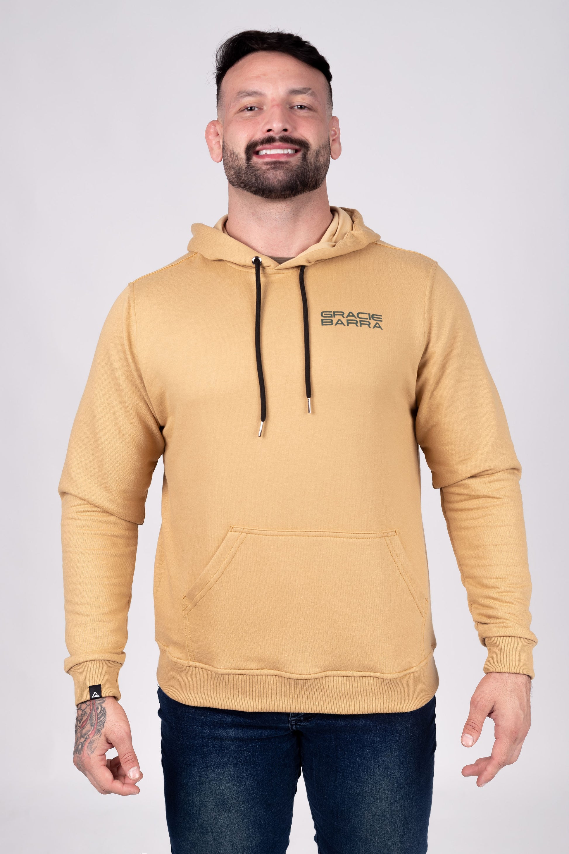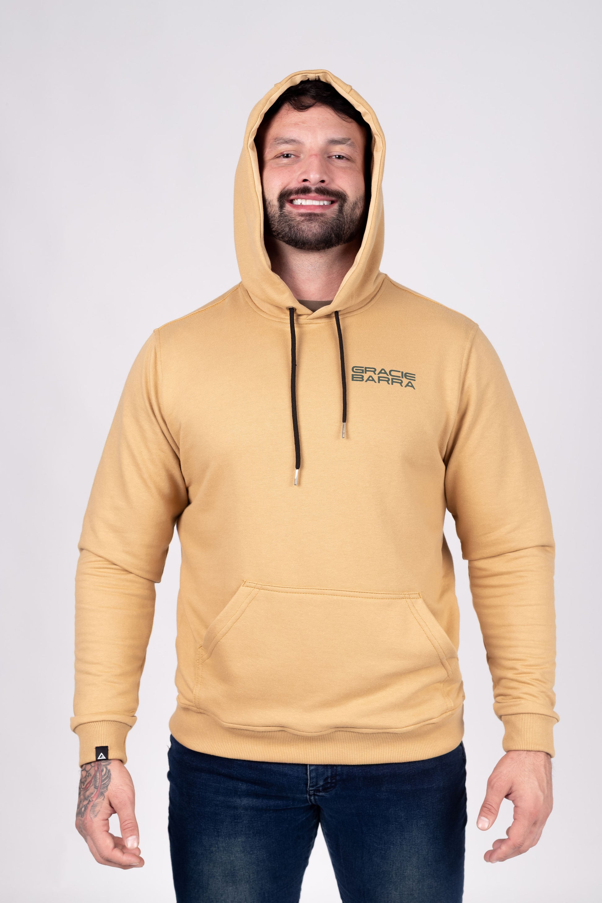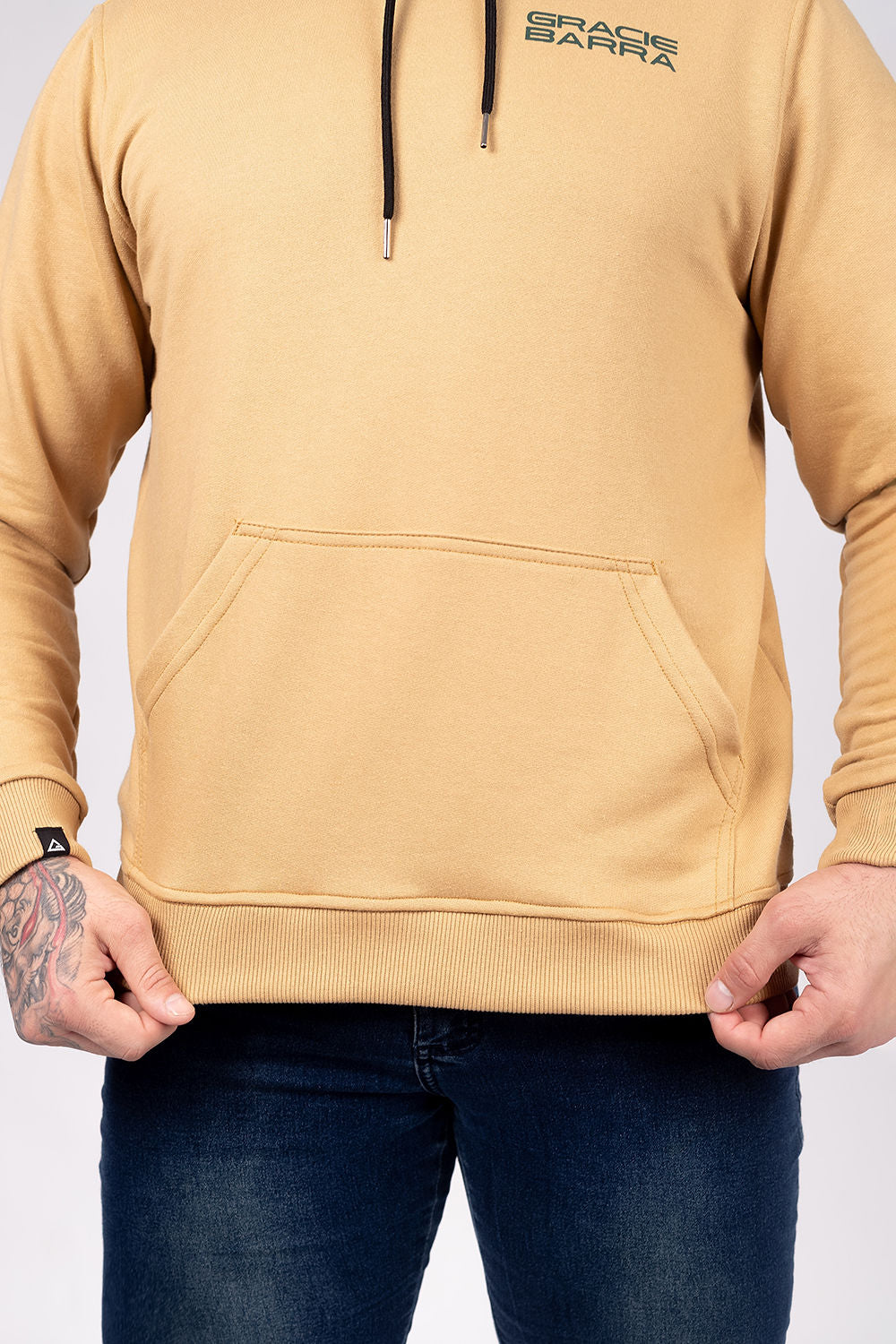 Capuz com forro macio, bolso cangurú tradicional e amplo. Punhos e barras reforçadas com ribana de compressão para o bloqueio do vento.
