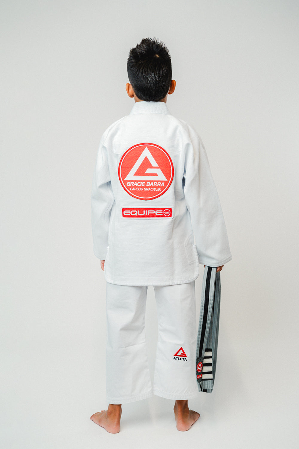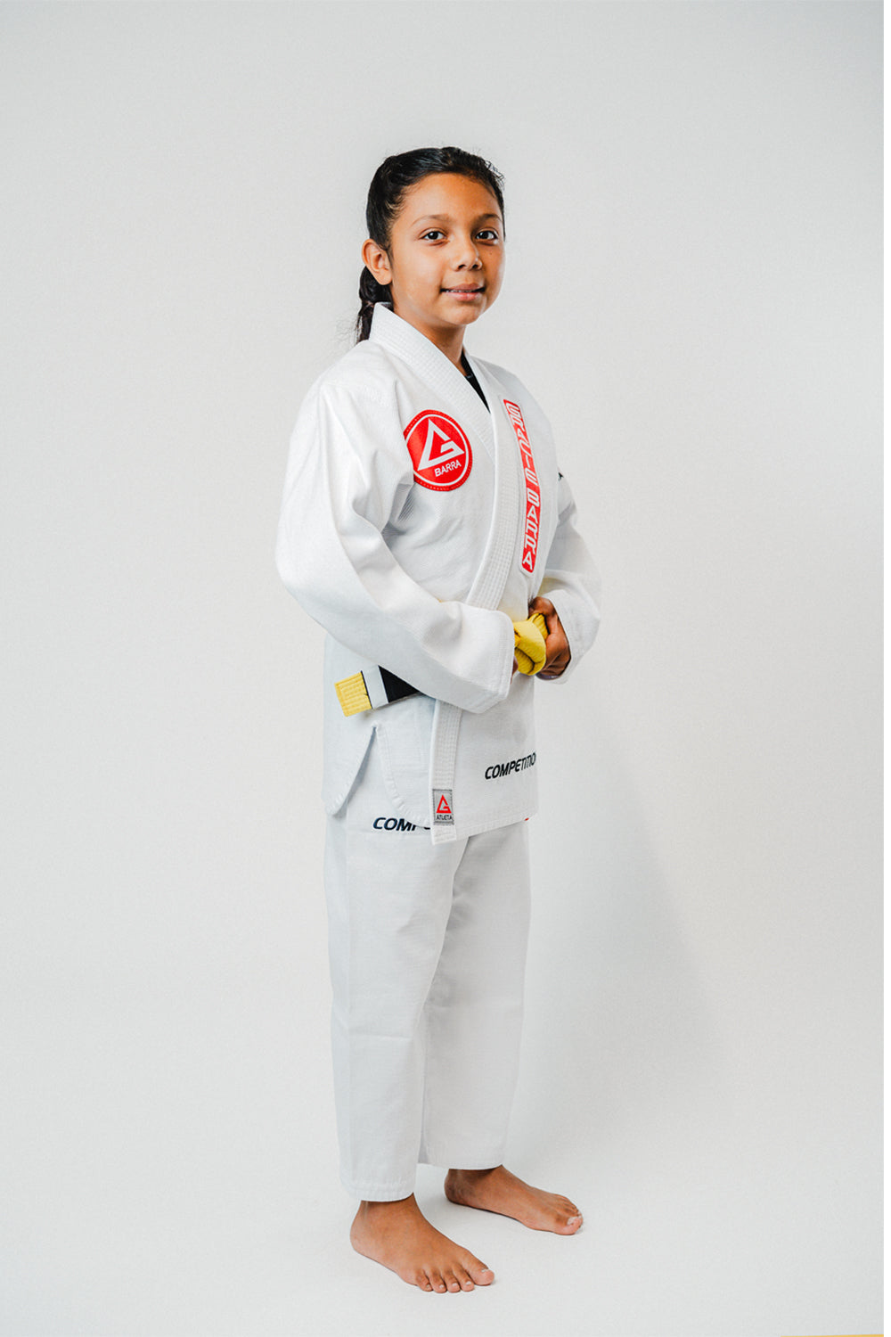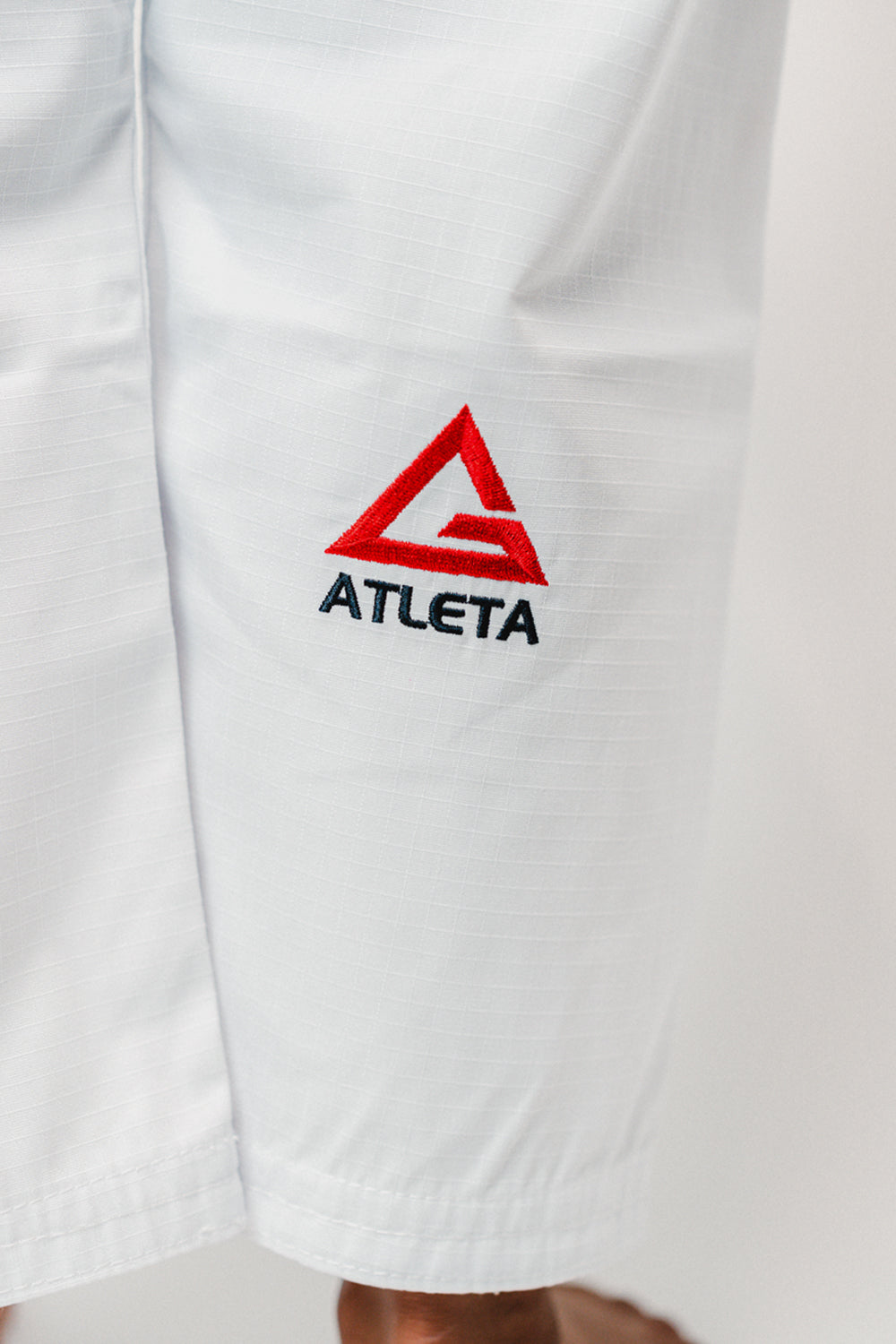Confeccionado com tecido pré-encolhido industrialmente antes do corte, podendo ocorrer um encolhimento residual de até 3,5% nas primeiras lavagens em virtude da acomodação da modelagem ao corpo do lutador