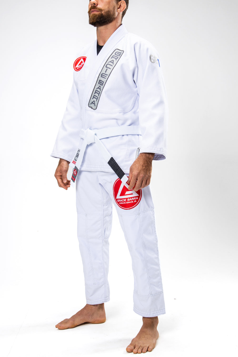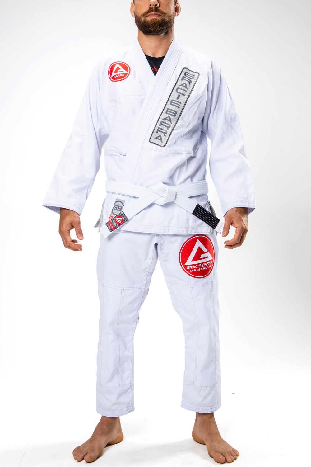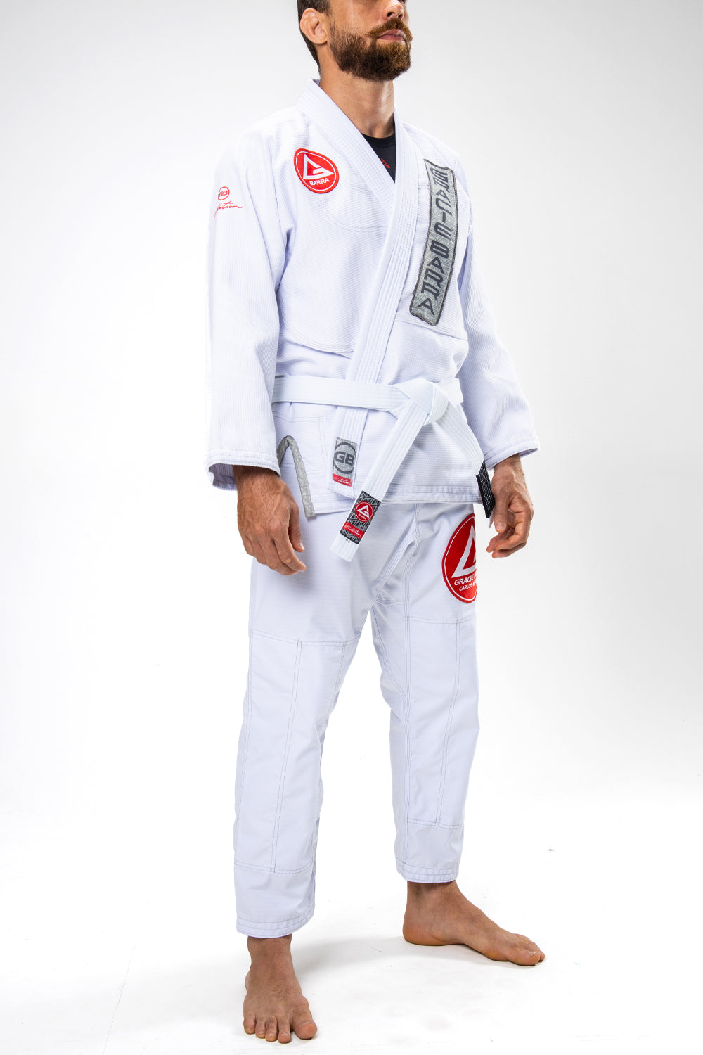 Confeccionado com tecido pré-encolhido industrialmente antes do corte, podendo ocorrer um encolhimento residual de até 3,5% nas primeiras lavagens em virtude da acomodação da modelagem ao corpo do lutador