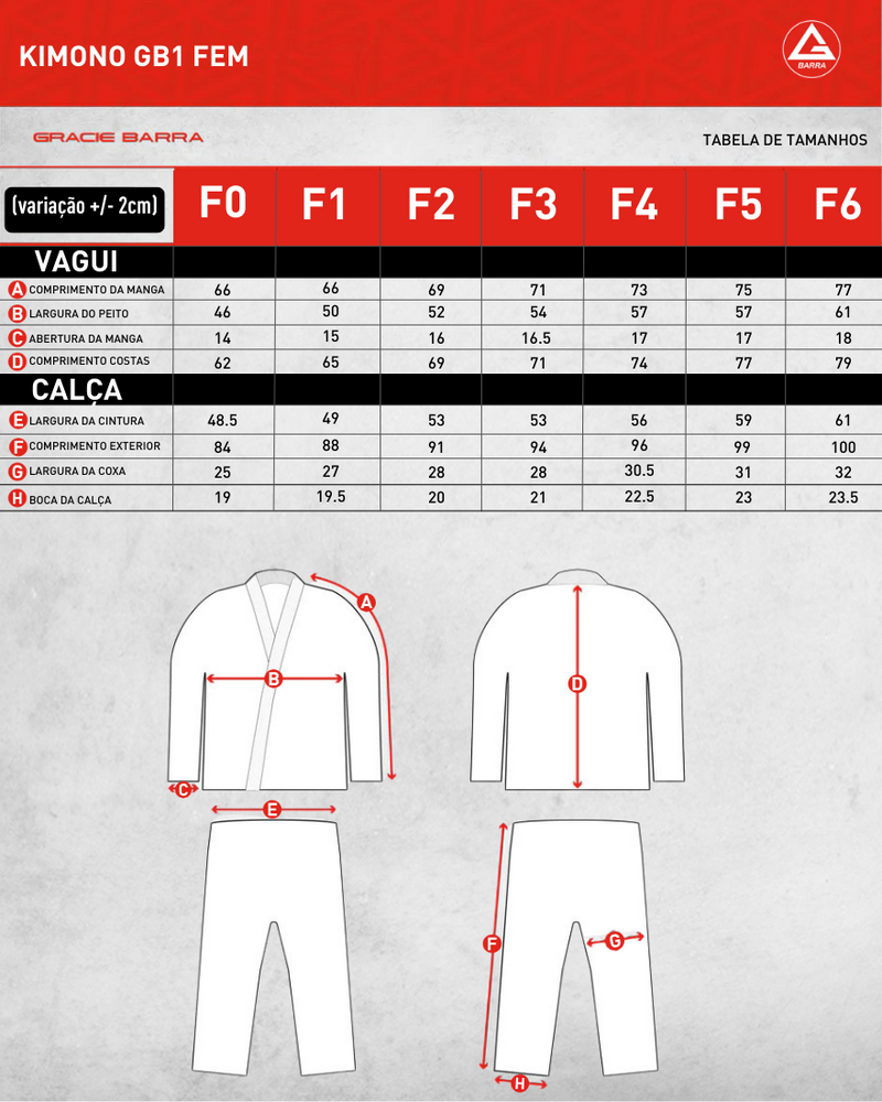 Confeccionado com tecido pré-encolhido industrialmente antes do corte, podendo ocorrer um encolhimento residual de até 3,5% nas primeiras lavagens em virtude da acomodação da modelagem ao corpo do lutador